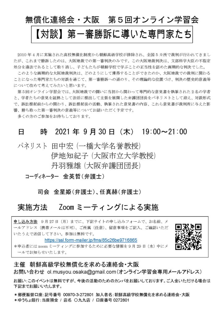 本日は無償化連絡会・大阪が主催する学習会のご案内です!