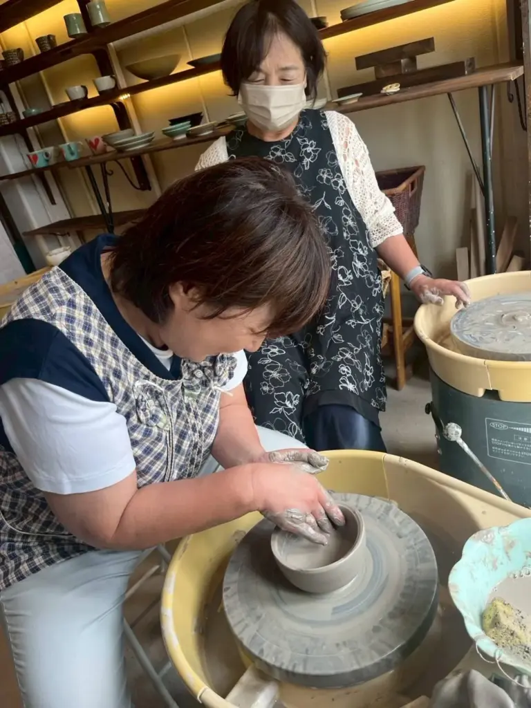 <また来たい、次は他の友人もつれてくる!><とっても楽しかった。先生が優しくほめてくれるので下手でも上級者になった気分♪>と感想を述べるほど大好評だった陶芸教室。