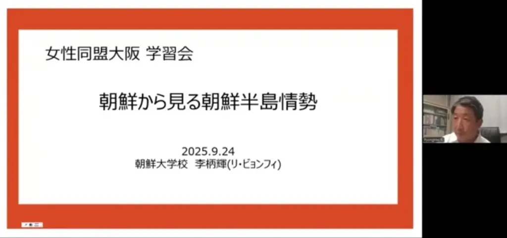 テーマは「朝鮮側から見る朝鮮半島情勢」、講師は第1回オンラインセミナーでも好評を博した朝鮮大学校文学歴史学部の李柄輝先生。