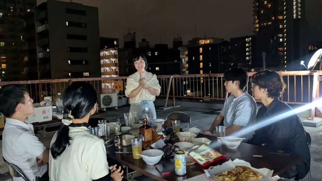 屋上の開放的な雰囲気の中、ゆったり語り合いながら楽しい時間を過ごしました。