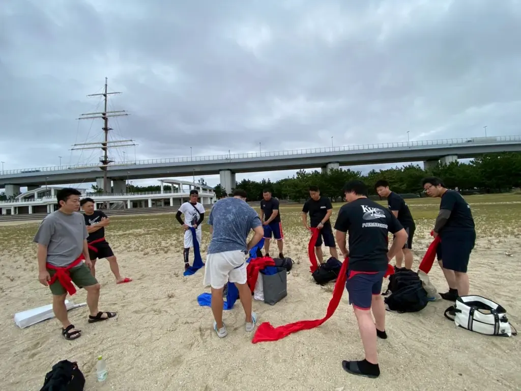 サッパ巻きと競技ルールのレクチャーに始まり、リーグ予選から決勝戦に至るまで全51試合の熱戦が繰り広げられ、激闘の末決勝までたどり着いたのは、主催として絶対に負けられない<東大阪地域青商会>、そして愛知代表として譲れない<名中地域青商会>!