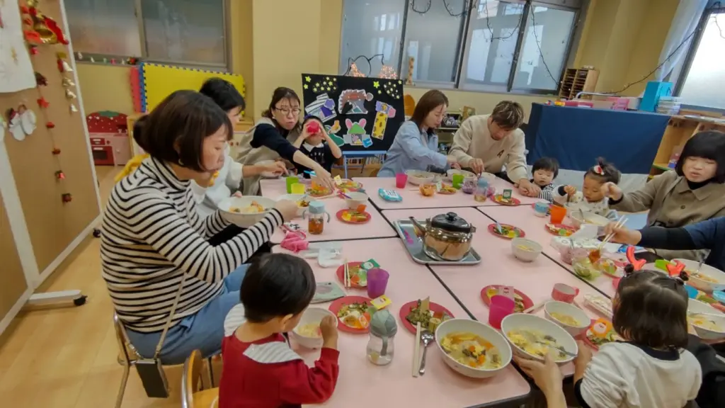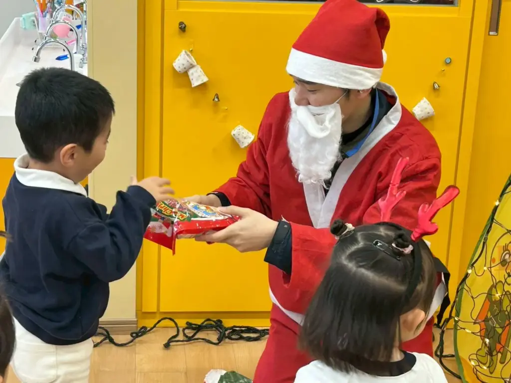 南大阪朝鮮初級学校学区のぴょんありクリスマス会が南初ハッキョにて行われました。ぴょんあり8人とスタッフ合わせて24人の参加のもと、幼稚班の先生が準備したお遊びや、オモニ会OGによるクリスマスリースの工作を親子一緒に楽しみました。その後サンタさんの登場でぴょんあり逹も大盛りあがり!お菓子のプレゼントにニコニコでした!最後は女盟オモニ達の美味しい給食を頂き、楽しい1日になりました!